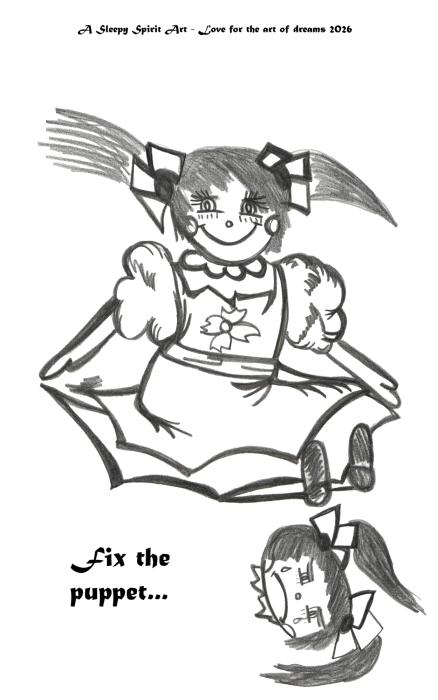 Fix the puppet - denne tegning er en måde at sige "Stop med at græde, se frem og begynd a smil igen".